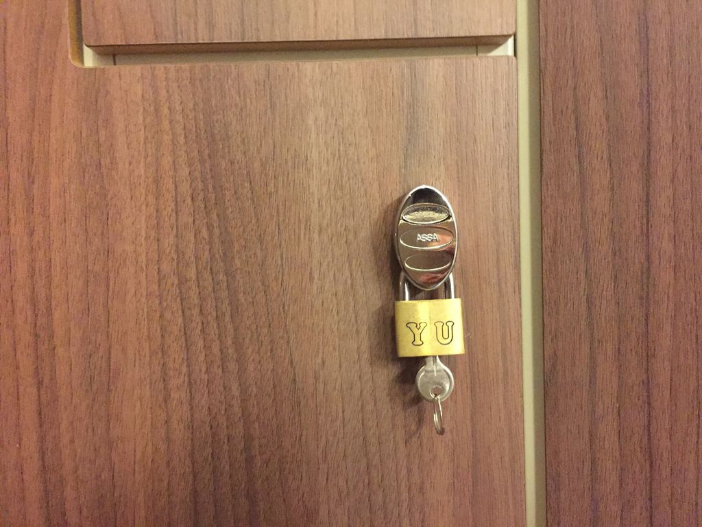 從台灣帶來的鎖,剛好在健身房更衣櫃派上用場!