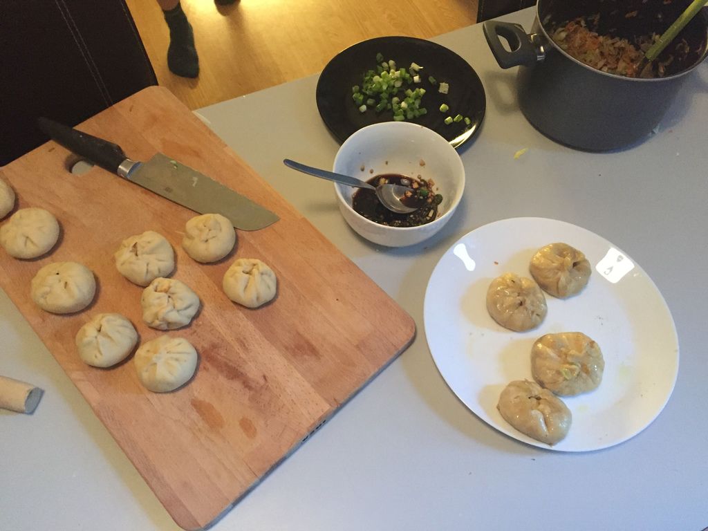 而且香香做水煎包都是從擀麵皮開始,0%到100%生出一盤盤水煎包的!如此搞剛!於是我也只好滿懷感激地,以很爛的手藝幫忙刨胡蘿蔔絲、切大蒜以及做雜事,希望能多少幫上一些忙。