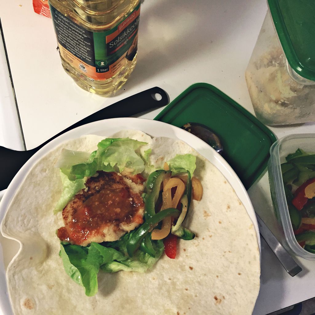 墨西哥捲包蔬菜與自製素堡排,愛死啦!