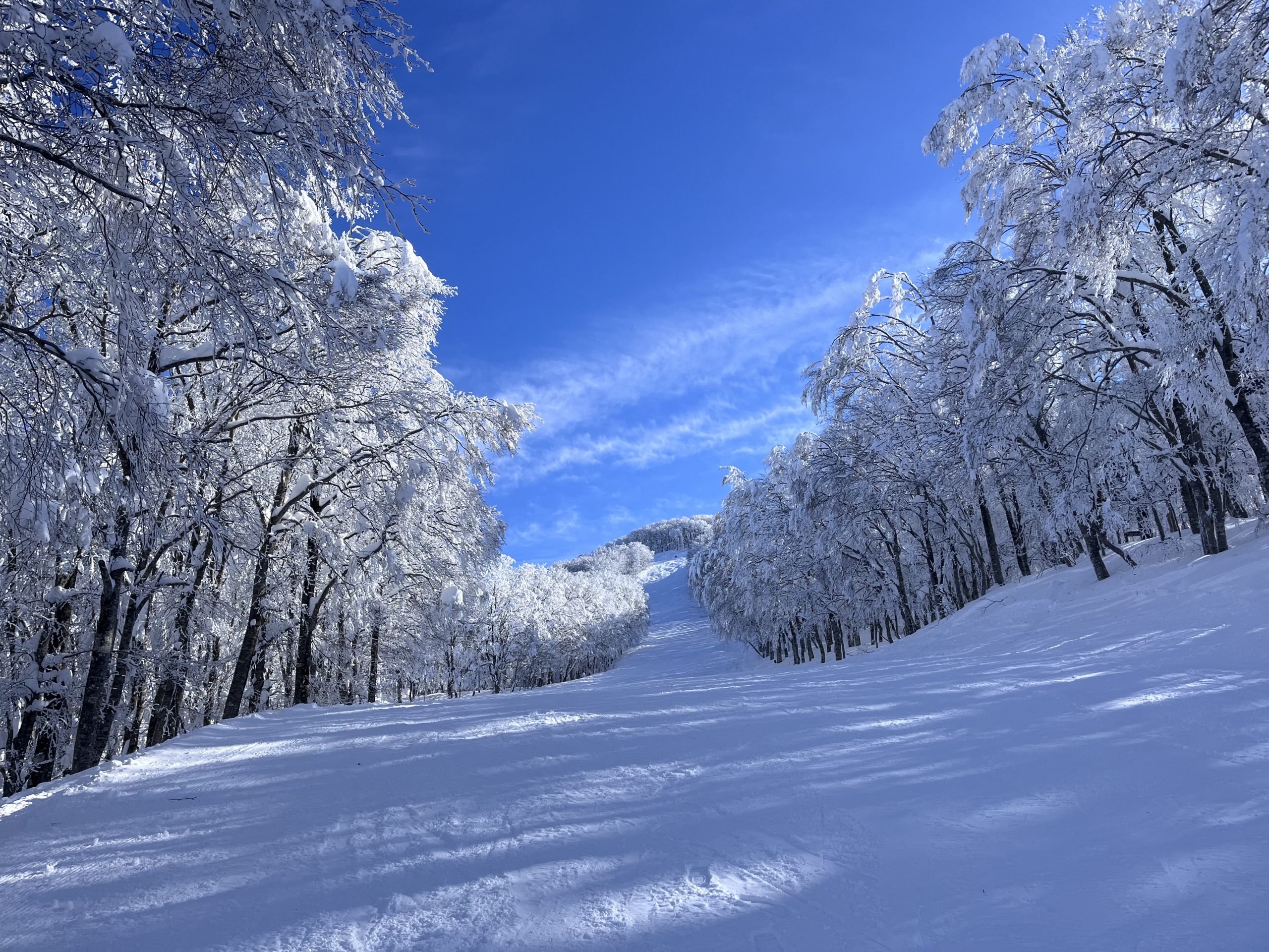 而且這兩天雪況大好,就算真的摔倒,也都是摔在拋拋軟軟的雪上。仰躺在無人的雪道上看著天空,彷彿整個世界都靜止下來,感覺無比療癒。